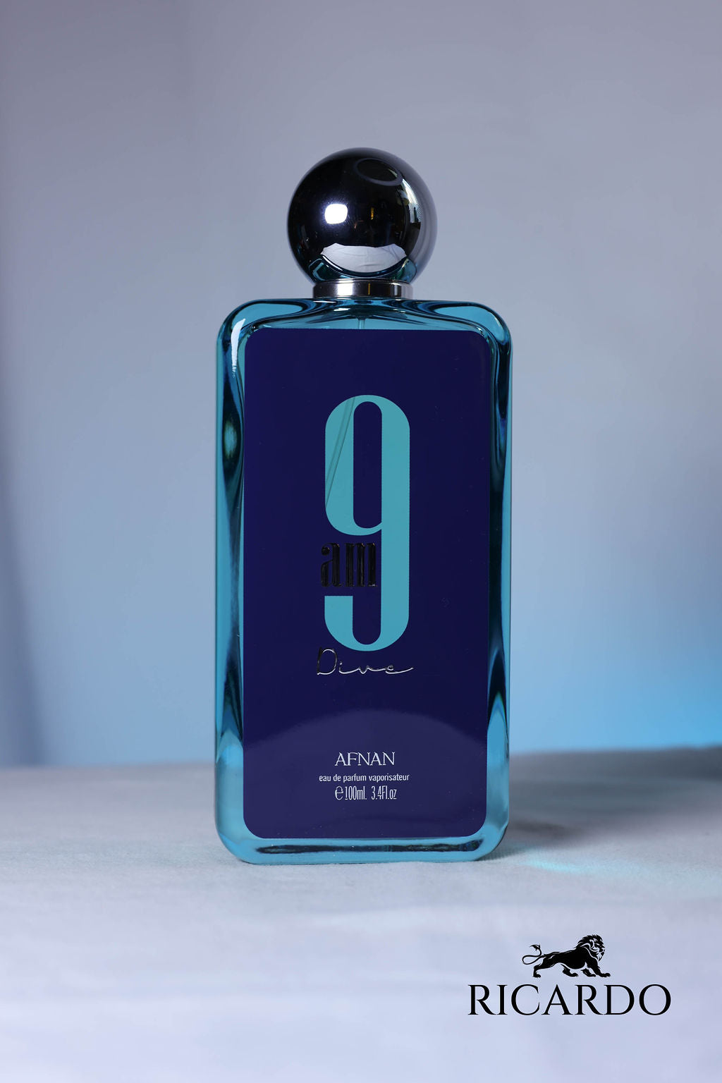 9am Dive by Afnan is a Aromatic Aquatic fragrance for women and men. Top notes are Lemon, Mint, Black Currant and Pink Pepper; middle notes are Apple, Incense and Cedar; base notes are Ginger, Sandalwood, Patchouli and Jasmine.